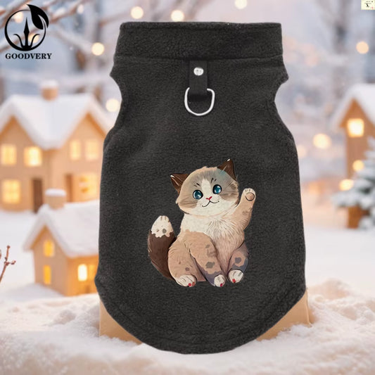 Cute Cats Print Winter Soft Fleece Apparel for Pets, Fashionable and Comfortable Cat Sweater for Small Pets Breeds
